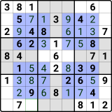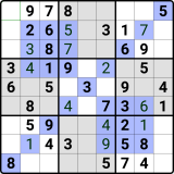 The objective of the game is to fill the entire game grid so that the digits from 1 to 9 appear exactly once in each region. For a standard Number Place a region is either a row, a column or one of the nine square 3x3 blocks.