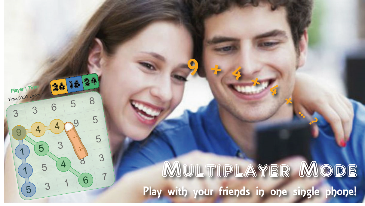 "Sum Search" is a new type of brain game. It has a bit of Word Search, as you will have to find the hidden numbers in the board although instead of words they will appear as sums. And it has a bit of Sudoku, but instead of applying logic to solve the puzzle you will need to apply simple arithmetics. You will have to sum quickly, you will have to sum correctly, you may need to use your intuition so you focus your search in the right places of the grid, and you will have a good amount of fun and develop your brain at the same time. This game really improves the way you can do quick sums on your day to day life.